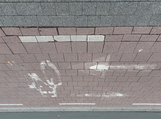 - Afgesleten markeringen voor de aanduiding van een dubbele rijrichting op het fietspad.